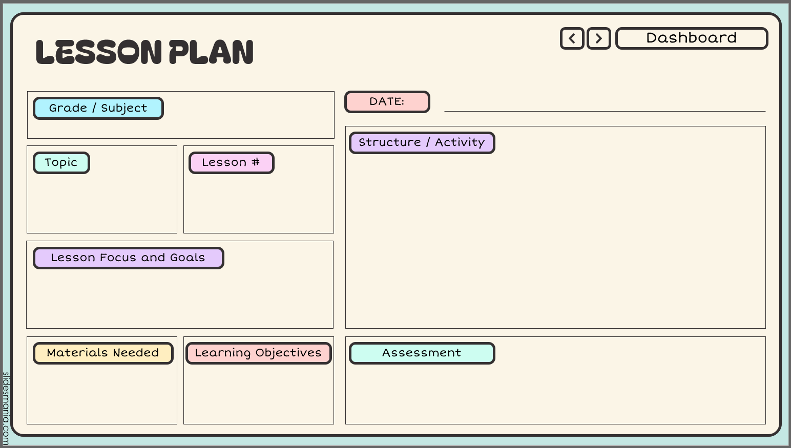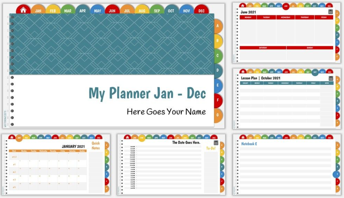 수업계획 주간 슬라이드가 있어서 학생이 쓰기 좋은 다이어리 템플릿이네요. 굿노트에서 쓸때는 월간 계획 먼저 작성하고세부 사항은 필요한 페이지를 그때끄때 추가해서 사용되겠네요.!! 학생에게 추천! 색상 테마를 이용하면 더 다채롭게 변경할 수 있겠네요.