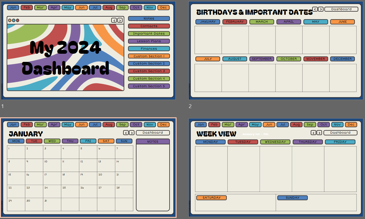 하이퍼링크가 설정된 무료 다이어리 테마 네 가지를 소개하였는데요, 이번 글에서는 다운로드한 무료테마를 수정하는 방법을 소개합니다. 굿노트 무료 템플릿 2024 플래너 year planner 아이패드 앱